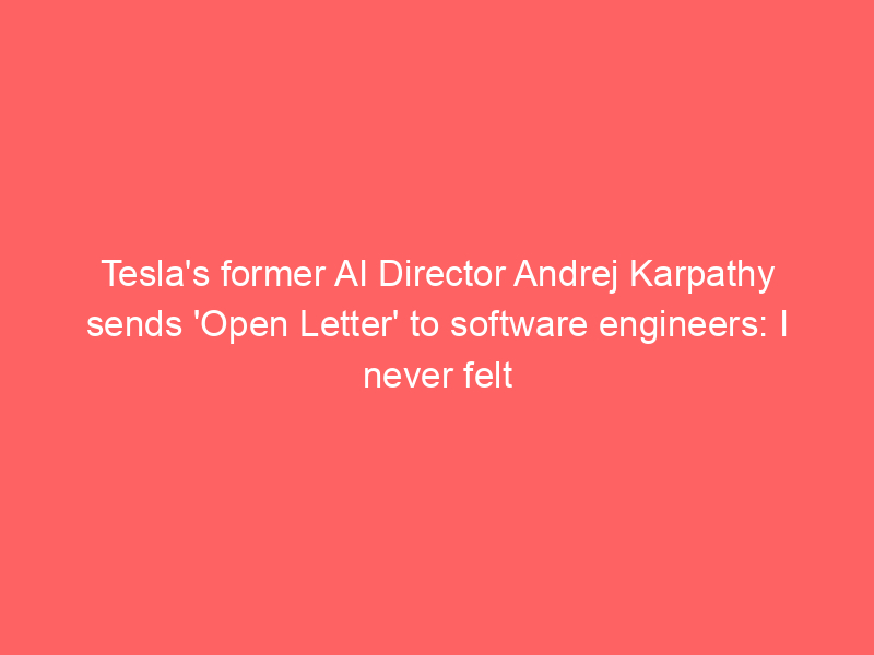 Tesla’s former AI Director Andrej Karpathy sends ‘Open Letter’ to software engineers: I never felt this m – Times of India / ai, AI (Artificial Intelligence), Artificial Intelligence / By hi@aiweekly.co.in Tesla’s former AI Director Andrej Karpathy sends ‘Open Letter’ to software engineers: I never felt this m Times of India