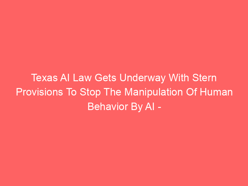 Texas AI Law Gets Underway With Stern Provisions To Stop The Manipulation Of Human Behavior By AI – Forbes