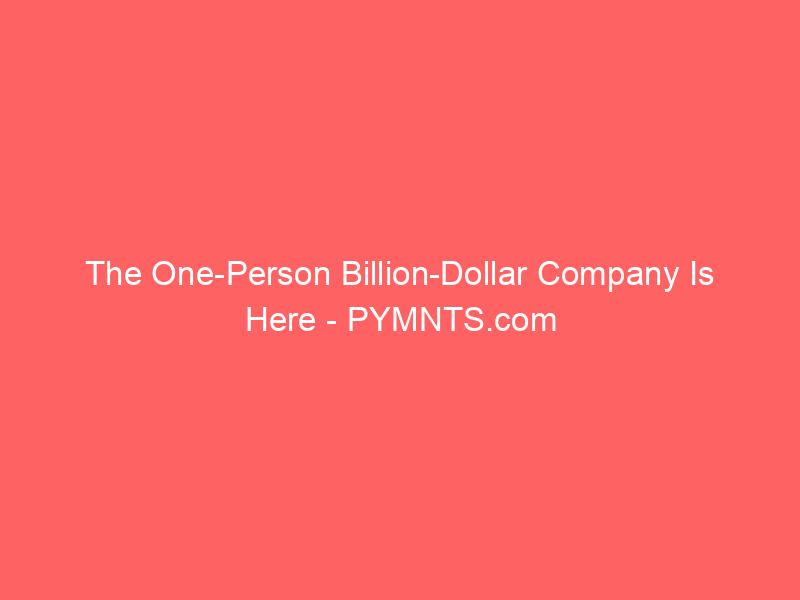 The One-Person Billion-Dollar Company Is Here – PYMNTS.com / Artificial intelligence (AI) / By hi@aiweekly.co.in The One-Person Billion-Dollar Company Is Here PYMNTS.com