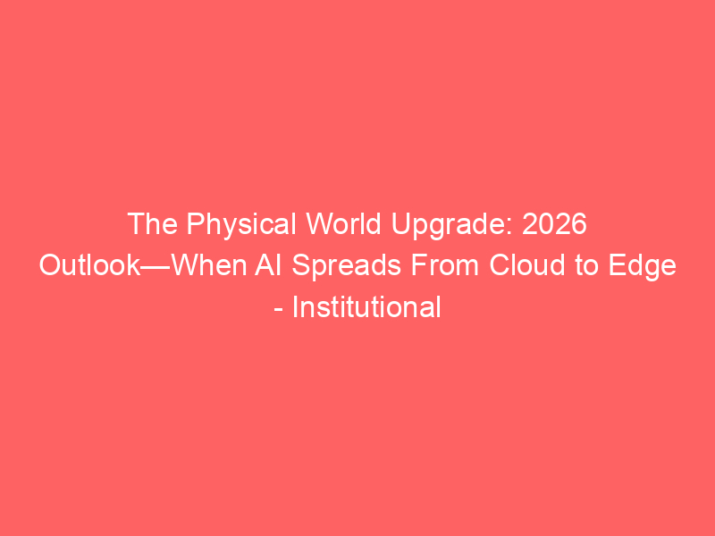 The Physical World Upgrade: 2026 Outlook—When AI Spreads From Cloud to Edge – Institutional Investor / Artificial intelligence (AI) / By hi@aiweekly.co.in The Physical World Upgrade: 2026 Outlook—When AI Spreads From Cloud to Edge Institutional Investor