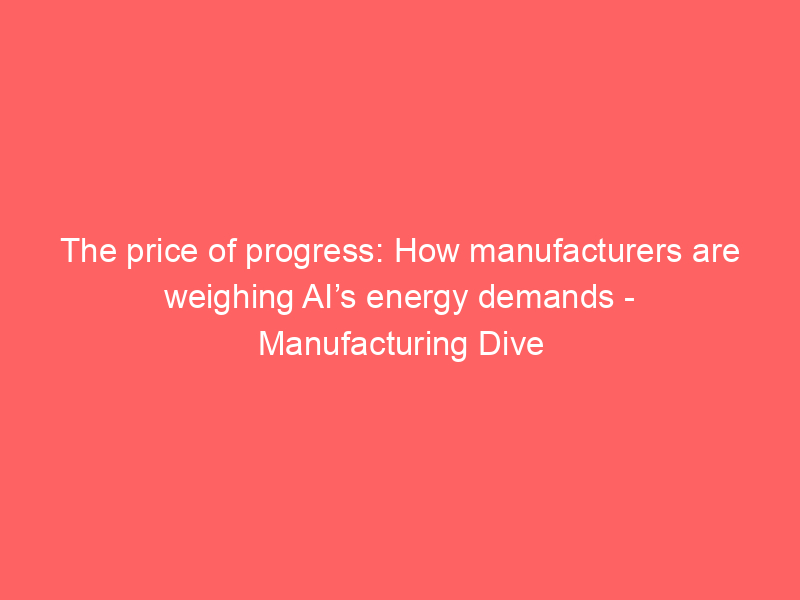 The price of progress: How manufacturers are weighing AI’s energy demands – Manufacturing Dive / Artificial intelligence (AI) / By hi@aiweekly.co.in The price of progress: How manufacturers are weighing AI’s energy demands Manufacturing Dive