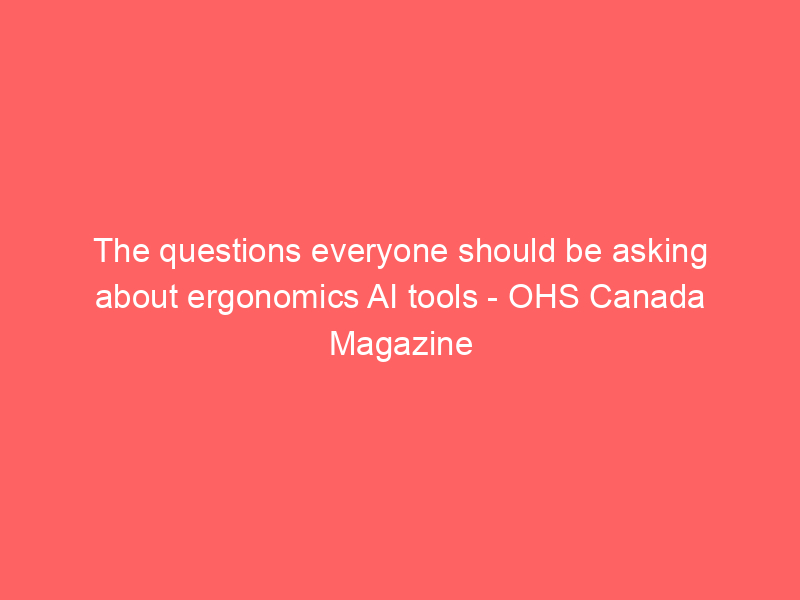 The questions everyone should be asking about ergonomics AI tools – OHS Canada Magazine / Artificial intelligence (AI) / By hi@aiweekly.co.in The questions everyone should be asking about ergonomics AI tools OHS Canada Magazine