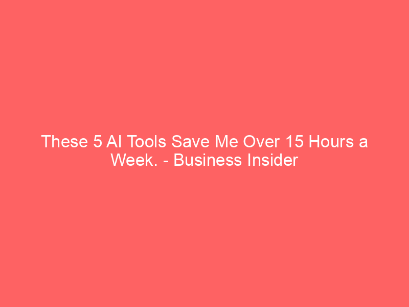 These 5 AI Tools Save Me Over 15 Hours a Week. – Business Insider / Artificial intelligence (AI) / By hi@aiweekly.co.in These 5 AI Tools Save Me Over 15 Hours a Week. Business Insider