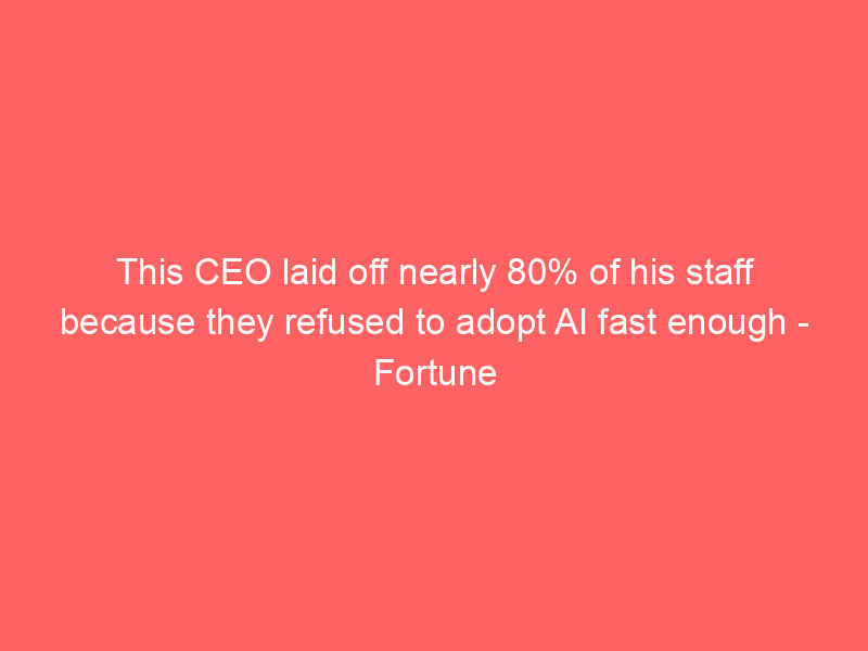 This CEO laid off nearly 80% of his staff because they refused to adopt AI fast enough – Fortune / Artificial intelligence (AI) / By hi@aiweekly.co.in This CEO laid off nearly 80% of his staff because they refused to adopt AI fast enough Fortune
