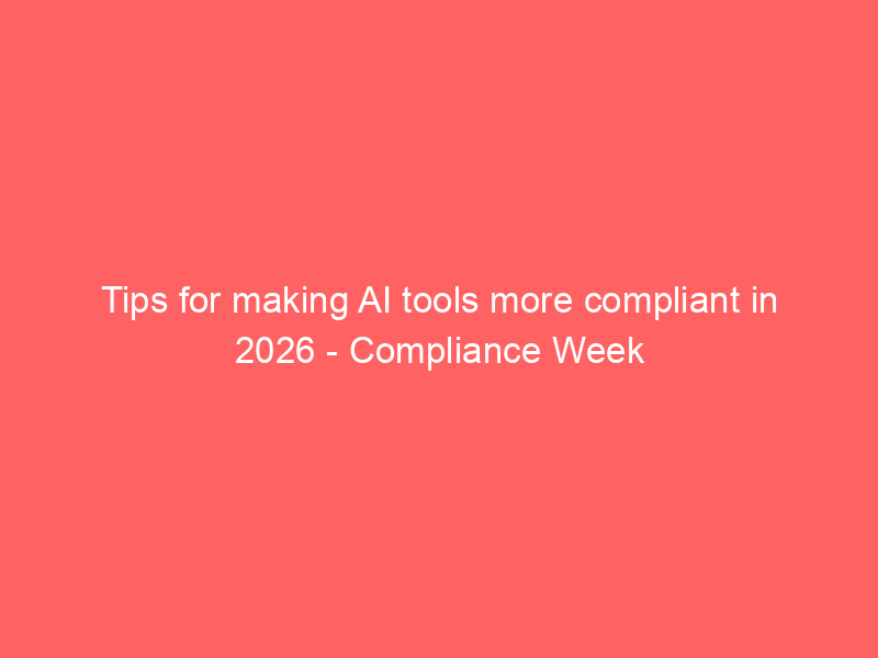 Tips for making AI tools more compliant in 2026 – Compliance Week / Artificial intelligence (AI) / By hi@aiweekly.co.in Tips for making AI tools more compliant in 2026 Compliance Week