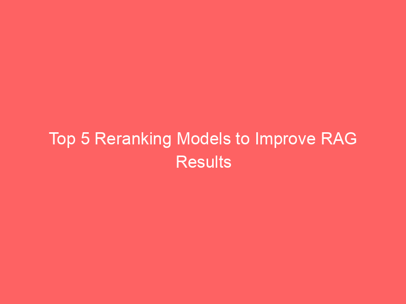 Top 5 Reranking Models to Improve RAG Results / ai, AI (Artificial Intelligence), Artificial Intelligence / By hi@aiweekly.co.in If you have worked with retrieval-augmented generation (RAG) systems, you have probably seen this problem.
