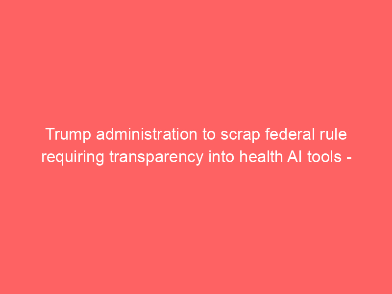 Trump administration to scrap federal rule requiring transparency into health AI tools – statnews.com / Artificial intelligence (AI) / By hi@aiweekly.co.in Trump administration to scrap federal rule requiring transparency into health AI tools statnews.com