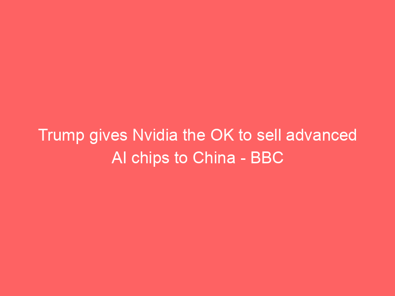 Trump gives Nvidia the OK to sell advanced AI chips to China BBCStock futures are little changed as Trump approves Nvidia chips sales to China: Live updates CNBCU.S. to allow Nvidia to ship H200 chips to China, Trump says The HinduTrump Says US Will Allow Sale Of Nvidia H200 AI Chips To China NDTVExclusive / White House floats compromise with China to export Nvidia H200 chips https-//www.semafor.com