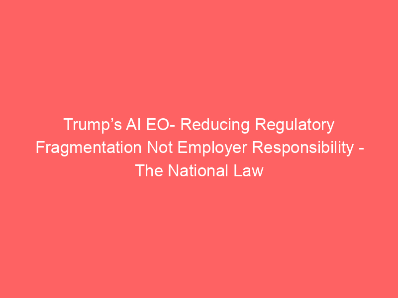 Trump’s AI EO- Reducing Regulatory Fragmentation Not Employer Responsibility – The National Law Review / Artificial intelligence (AI) / By hi@aiweekly.co.in Trump’s AI EO- Reducing Regulatory Fragmentation Not Employer Responsibility The National Law Review