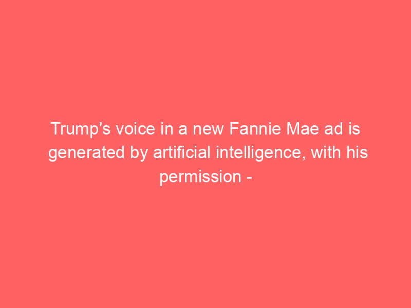 Trump’s voice in a new Fannie Mae ad is generated by artificial intelligence, with his permission – The Frederick News-Post / Artificial intelligence (AI) / By hi@aiweekly.co.in Trump’s voice in a new Fannie Mae ad is generated by artificial intelligence, with his permission The Frederick News-Post