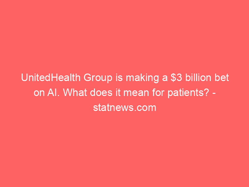 UnitedHealth Group is making a $3 billion bet on AI. What does it mean for patients? – statnews.com / Artificial intelligence (AI) / By hi@aiweekly.co.in UnitedHealth Group is making a $3 billion bet on AI. What does it mean for patients? statnews.com
