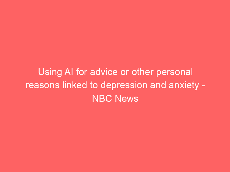 Using AI for advice or other personal reasons linked to depression and anxiety – NBC News / Artificial intelligence (AI) / By hi@aiweekly.co.in Using AI for advice or other personal reasons linked to depression and anxiety NBC News