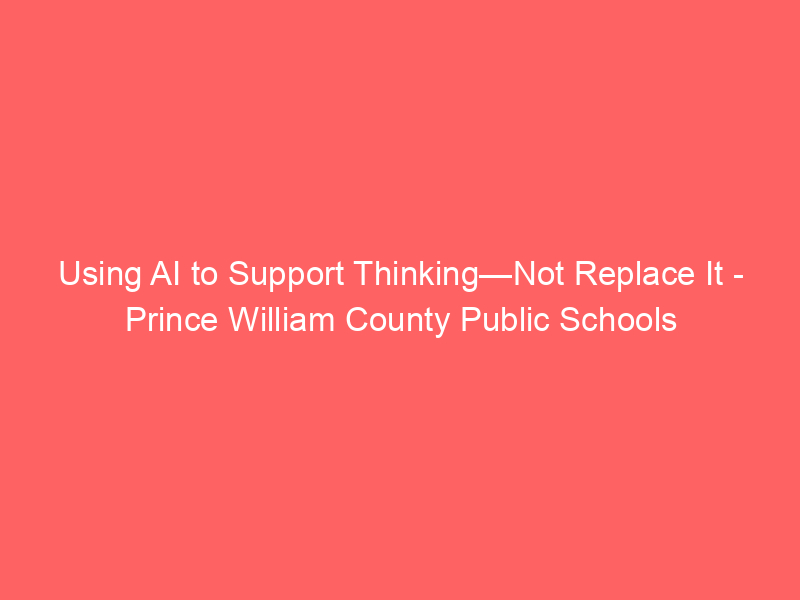 Using AI to Support Thinking—Not Replace It – Prince William County Public Schools / Artificial intelligence (AI) / By hi@aiweekly.co.in Using AI to Support Thinking—Not Replace It Prince William County Public Schools
