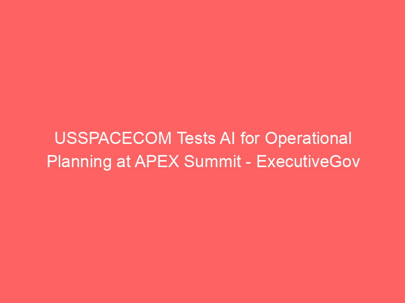 USSPACECOM Tests AI for Operational Planning at APEX Summit – ExecutiveGov / Artificial intelligence (AI) / By hi@aiweekly.co.in USSPACECOM Tests AI for Operational Planning at APEX Summit ExecutiveGov