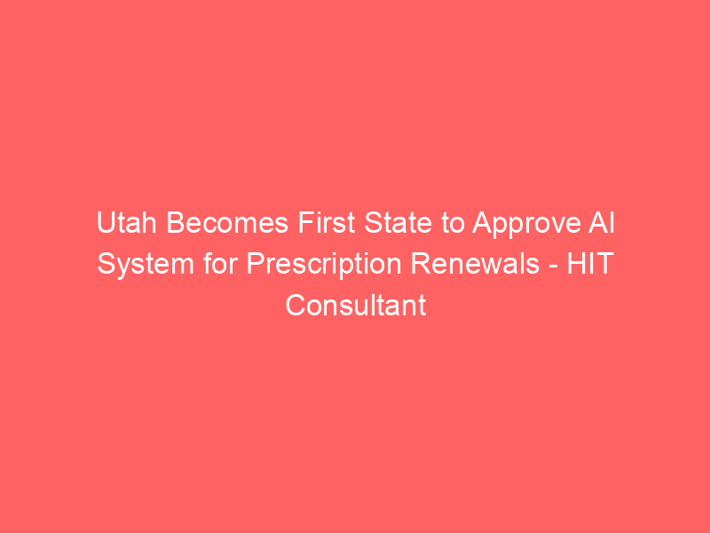 Utah Becomes First State to Approve AI System for Prescription Renewals – HIT Consultant / Artificial intelligence (AI) / By hi@aiweekly.co.in Utah Becomes First State to Approve AI System for Prescription Renewals HIT Consultant