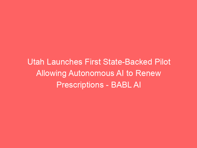 Utah Launches First State-Backed Pilot Allowing Autonomous AI to Renew Prescriptions – BABL AI / Artificial intelligence (AI) / By hi@aiweekly.co.in Utah Launches First State-Backed Pilot Allowing Autonomous AI to Renew Prescriptions BABL AI