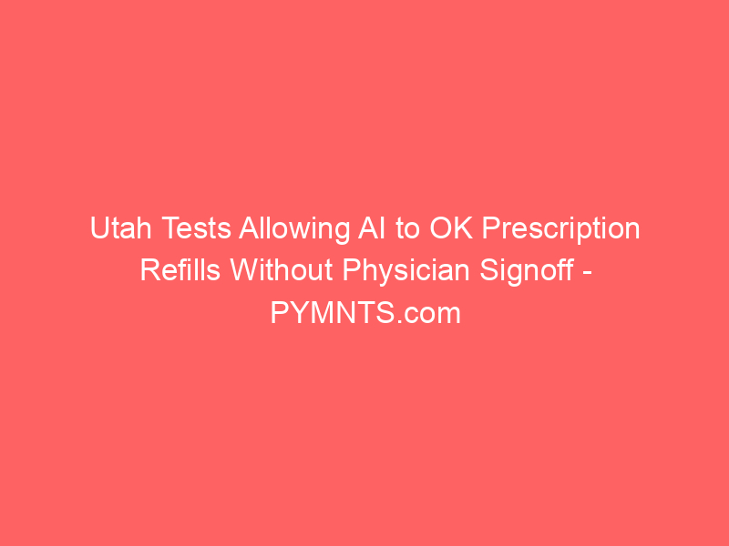 Utah Tests Allowing AI to OK Prescription Refills Without Physician Signoff – PYMNTS.com / Artificial intelligence (AI) / By hi@aiweekly.co.in Utah Tests Allowing AI to OK Prescription Refills Without Physician Signoff PYMNTS.com
