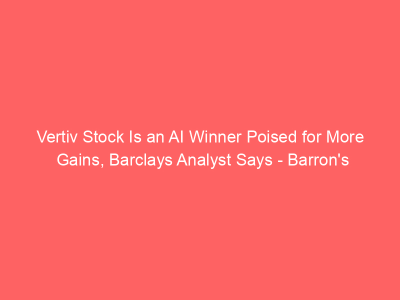 Vertiv Stock Is an AI Winner Poised for More Gains, Barclays Analyst Says – Barron’s / Artificial intelligence (AI) / By hi@aiweekly.co.in Vertiv Stock Is an AI Winner Poised for More Gains, Barclays Analyst Says Barron’s