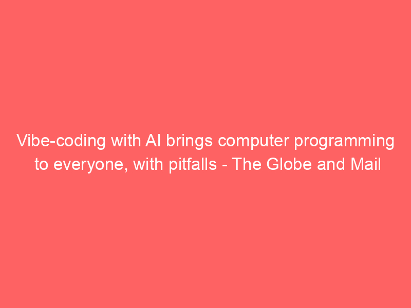 Vibe-coding with AI brings computer programming to everyone, with pitfalls – The Globe and Mail / Artificial intelligence (AI) / By hi@aiweekly.co.in Vibe-coding with AI brings computer programming to everyone, with pitfalls The Globe and Mail