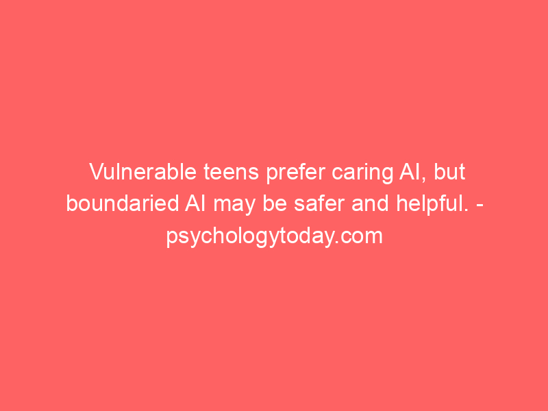 Vulnerable teens prefer caring AI, but boundaried AI may be safer and helpful. – psychologytoday.com / Artificial intelligence (AI) / By hi@aiweekly.co.in Vulnerable teens prefer caring AI, but boundaried AI may be safer and helpful. psychologytoday.com