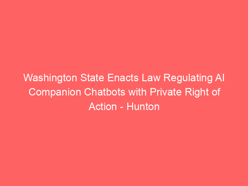 Washington State Enacts Law Regulating AI Companion Chatbots with Private Right of Action – Hunton Andrews Kurth LLP / Artificial intelligence (AI) / By hi@aiweekly.co.in Washington State Enacts Law Regulating AI Companion Chatbots with Private Right of Action Hunton Andrews Kurth LLP