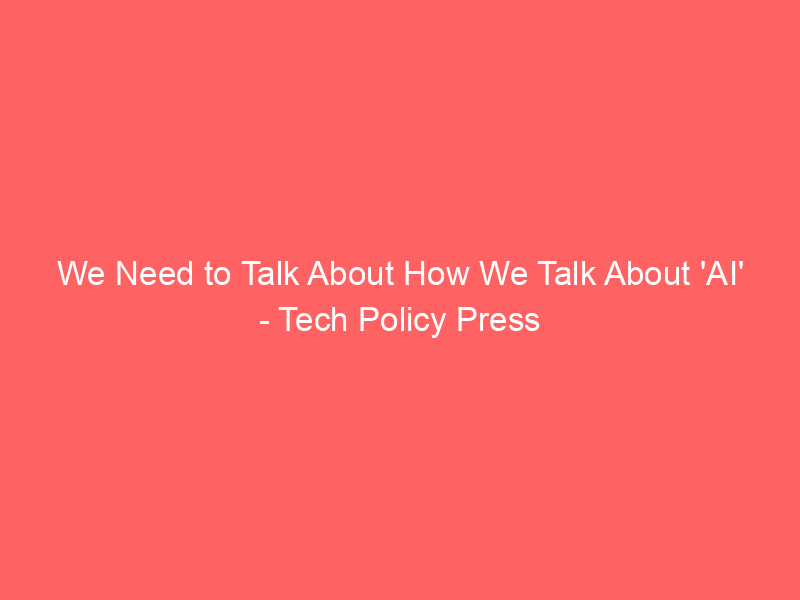 We Need to Talk About How We Talk About ‘AI’ – Tech Policy Press / Artificial intelligence (AI) / By hi@aiweekly.co.in We Need to Talk About How We Talk About ‘AI’ Tech Policy Press