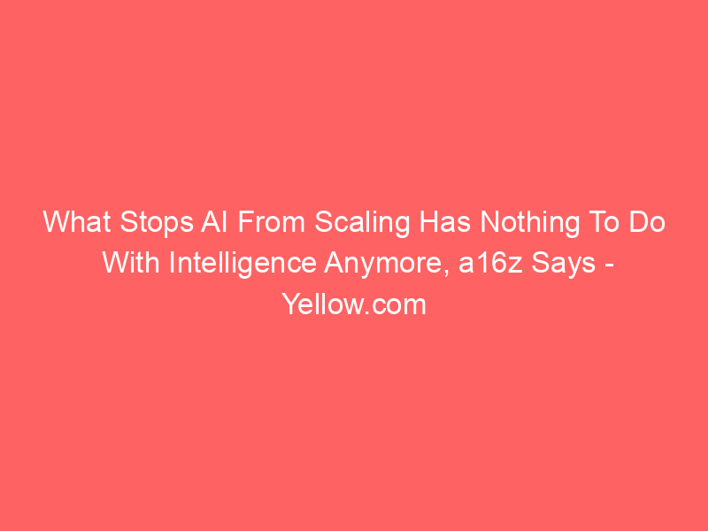 What Stops AI From Scaling Has Nothing To Do With Intelligence Anymore, a16z Says – Yellow.com / Artificial intelligence (AI) / By hi@aiweekly.co.in What Stops AI From Scaling Has Nothing To Do With Intelligence Anymore, a16z Says Yellow.com