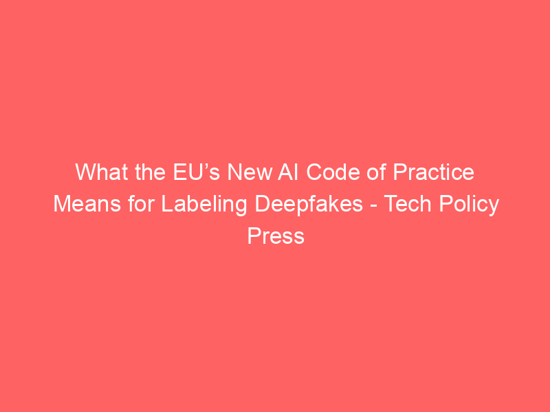 What the EU’s New AI Code of Practice Means for Labeling Deepfakes – Tech Policy Press / Artificial intelligence (AI) / By hi@aiweekly.co.in What the EU’s New AI Code of Practice Means for Labeling Deepfakes Tech Policy Press