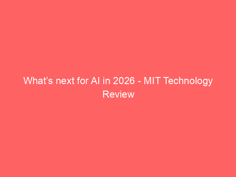 What’s next for AI in 2026 – MIT Technology Review / Artificial intelligence (AI) / By hi@aiweekly.co.in What’s next for AI in 2026 MIT Technology Review