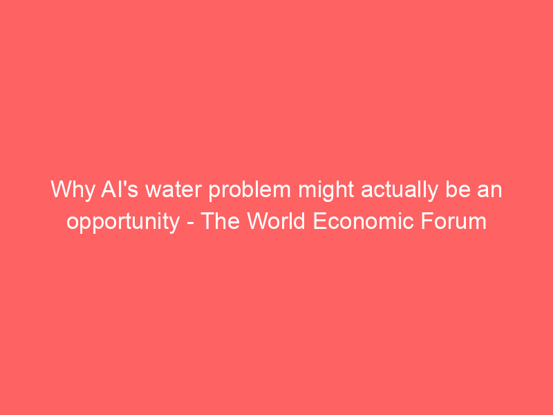 Why AI’s water problem might actually be an opportunity – The World Economic Forum