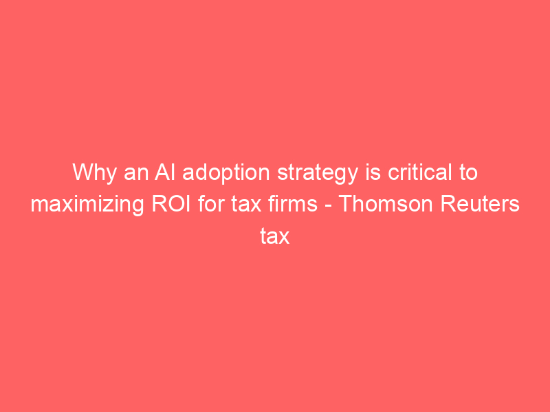 Why an AI adoption strategy is critical to maximizing ROI for tax firms – Thomson Reuters tax / Artificial intelligence (AI) / By hi@aiweekly.co.in Why an AI adoption strategy is critical to maximizing ROI for tax firms Thomson Reuters tax
