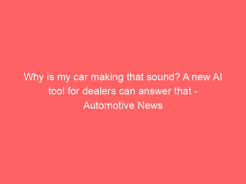 Why is my car making that sound? A new AI tool for dealers can answer that – Automotive News