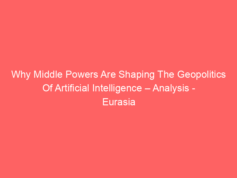 Why Middle Powers Are Shaping The Geopolitics Of Artificial Intelligence – Analysis – Eurasia Review / Artificial intelligence (AI) / By hi@aiweekly.co.in Why Middle Powers Are Shaping The Geopolitics Of Artificial Intelligence – Analysis Eurasia Review