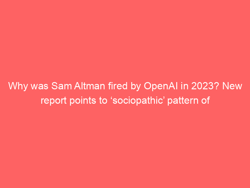 Why was Sam Altman fired by OpenAI in 2023? New report points to ‘sociopathic’ pattern of deception – Mint / ai, AI (Artificial Intelligence), Artificial Intelligence / By hi@aiweekly.co.in Why was Sam Altman fired by OpenAI in 2023? New report points to ‘sociopathic’ pattern of deception Mint