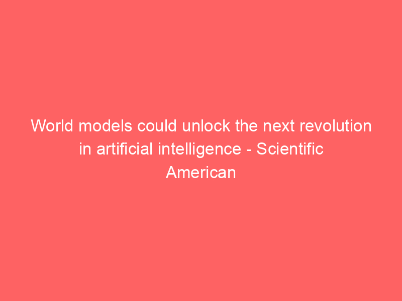 World models could unlock the next revolution in artificial intelligence – Scientific American / Artificial intelligence (AI) / By hi@aiweekly.co.in World models could unlock the next revolution in artificial intelligence Scientific American