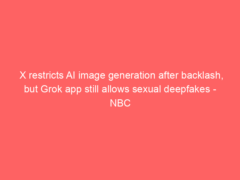 X restricts AI image generation after backlash, but Grok app still allows sexual deepfakes – NBC News