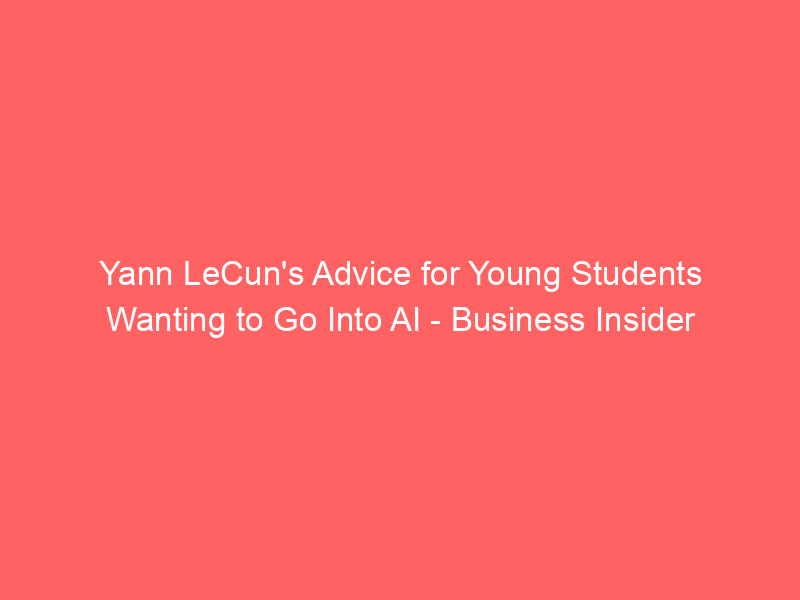 Yann LeCun’s Advice for Young Students Wanting to Go Into AI – Business Insider