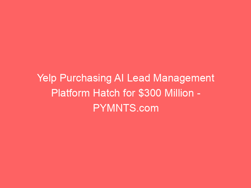 Yelp Purchasing AI Lead Management Platform Hatch for $300 Million – PYMNTS.com / Artificial intelligence (AI) / By hi@aiweekly.co.in Yelp Purchasing AI Lead Management Platform Hatch for $300 Million PYMNTS.com